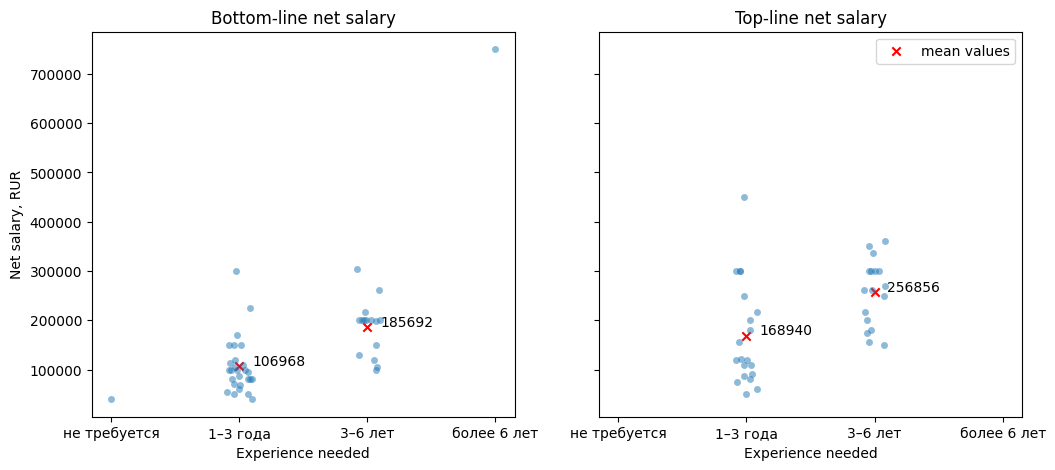 axs[0].set_ylabel('Net salary, RUR')